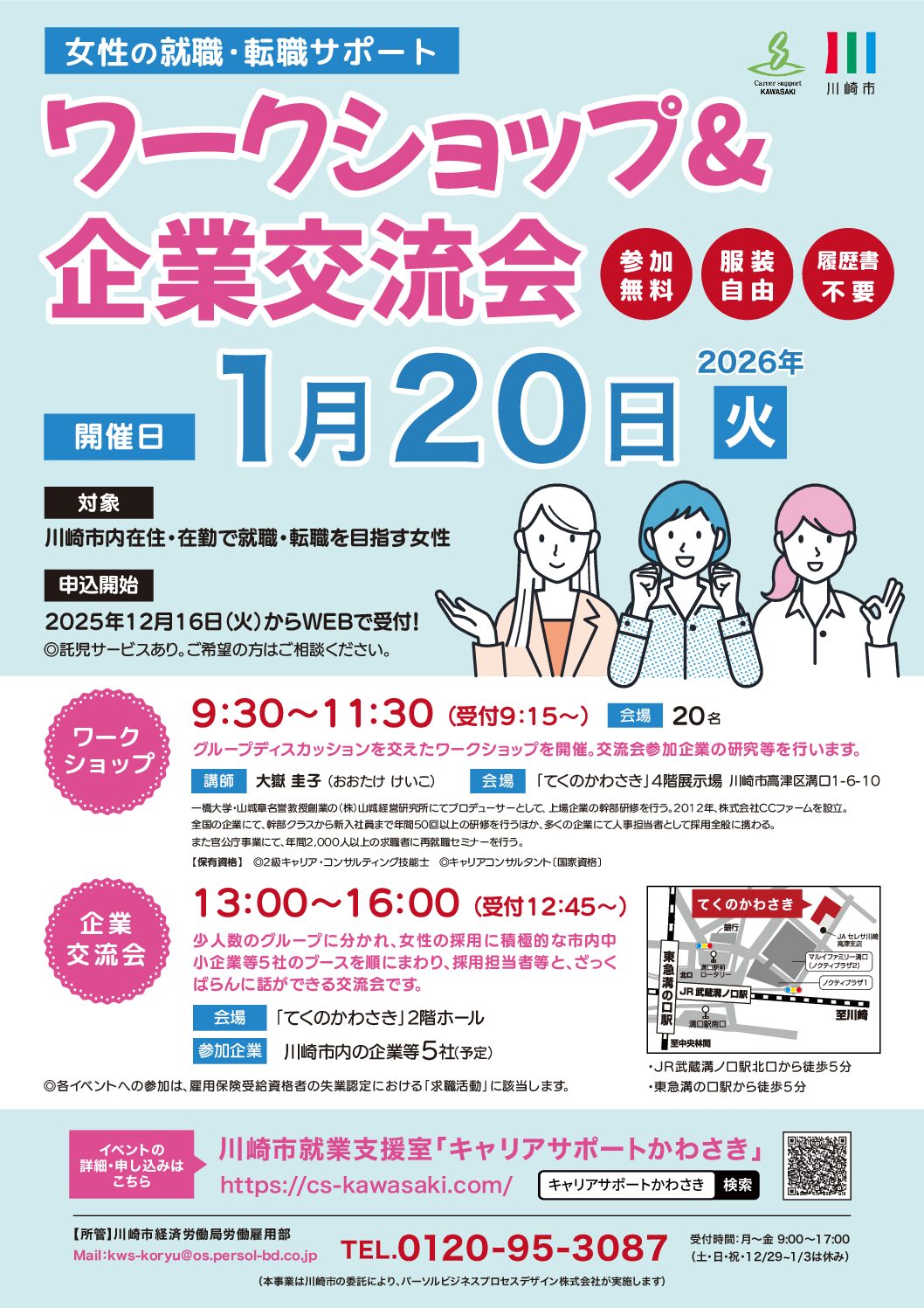 - 2026/1/20(火)開催【女性の就職・転職サポート】 ワークショップ&企業交流会
