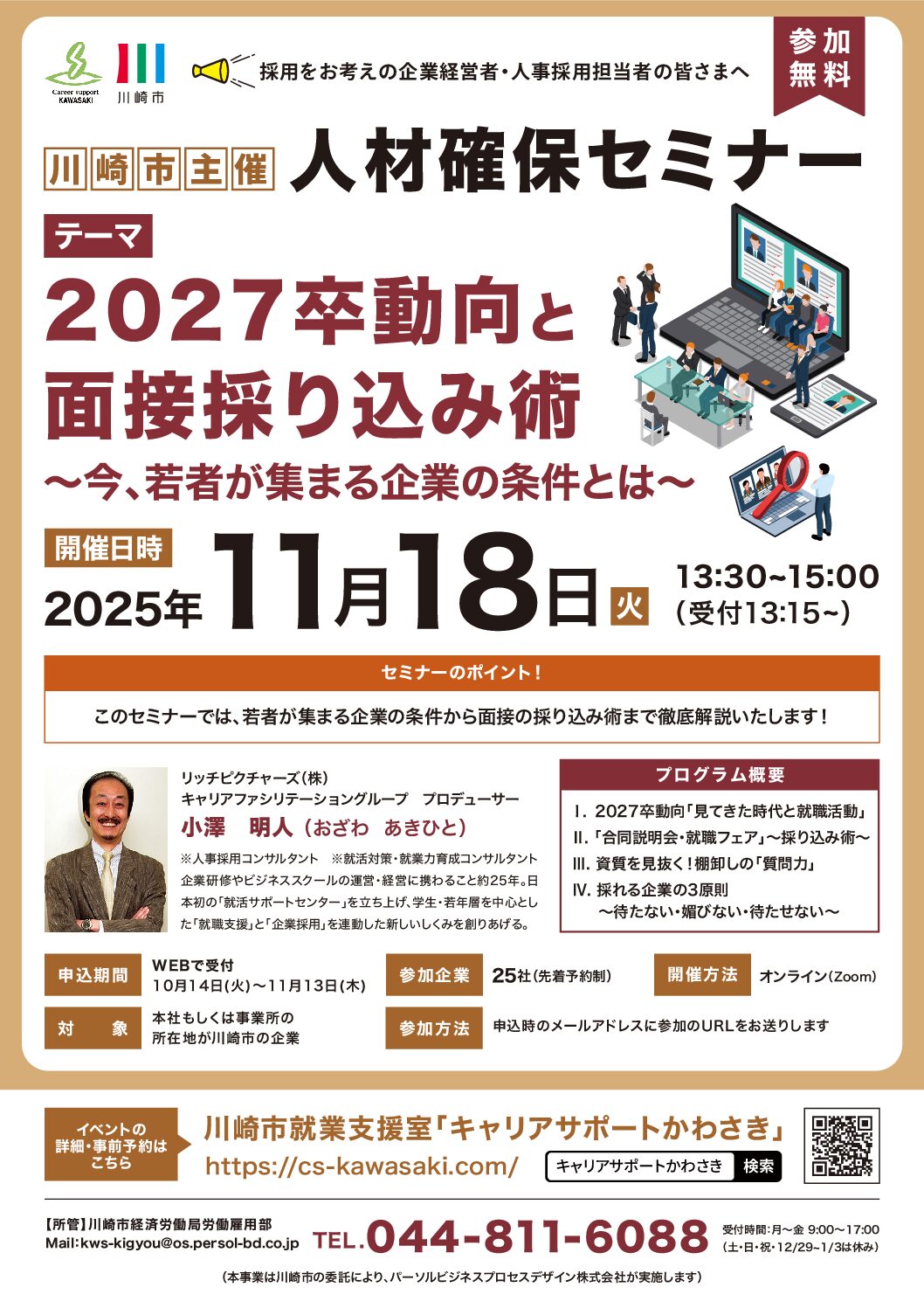 企業向けオンラインセミナー【人材確保セミナー】 2027卒動向と面接採り込み術